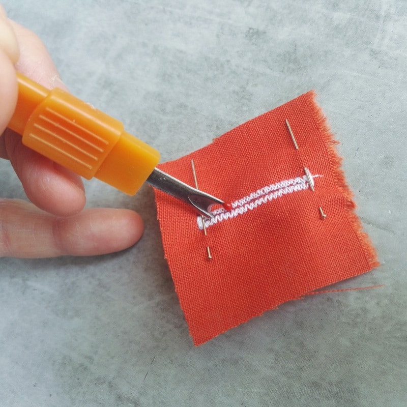 C’est le moment de vérité. Trop d’élan, c’est la déchirure ; trop de retenue, la boutonnière ne s’ouvrira pas assez. Placez une épingle à chaque extrémité pour servir de garde-fou, puis maniez le découd-vite sans brutalité. Évidez le surplus de fil, vérifiez l’échancrure… et savourez le résultat.